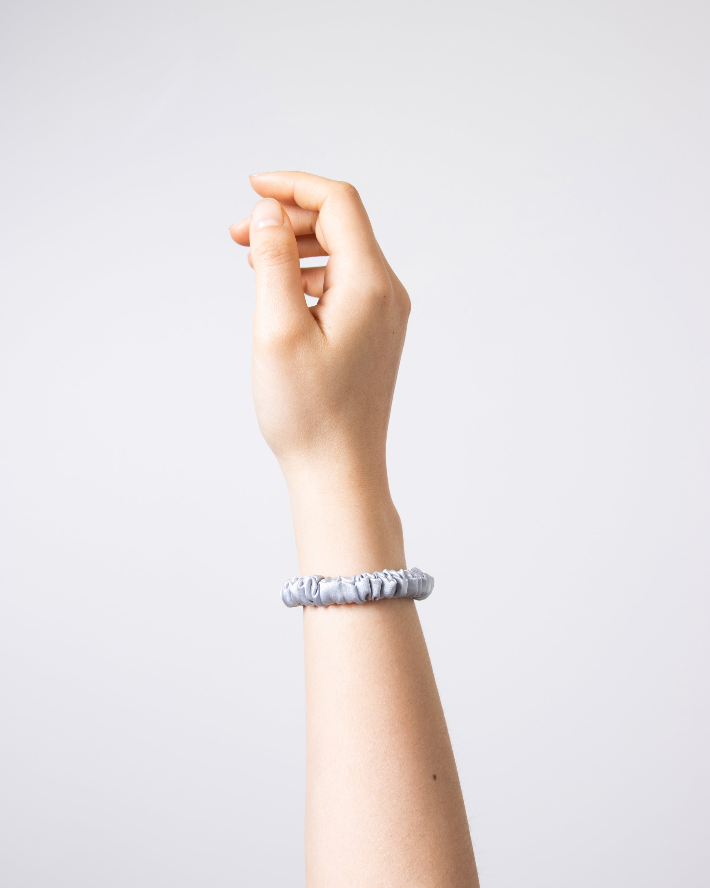 The Souszy Small Silk Scrunchie Set in Silver is soft, easy and made for everyday wear. Made from 22 momme 100% mulberry silk, these scrunchies slide through hair smoothly to help reduce frizz and breakage.